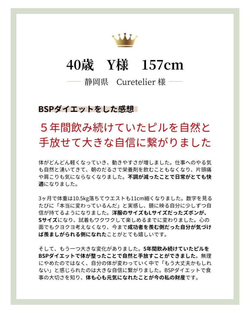 体重やサイズの変化だけでなく、体調面にも前向きな変化を実感。