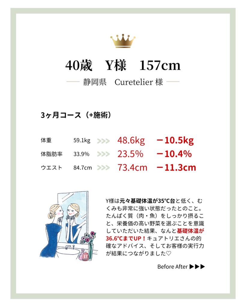 もともと基礎体温が35℃台と低く、むくみも強い状態でしたが、